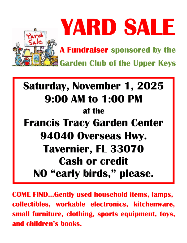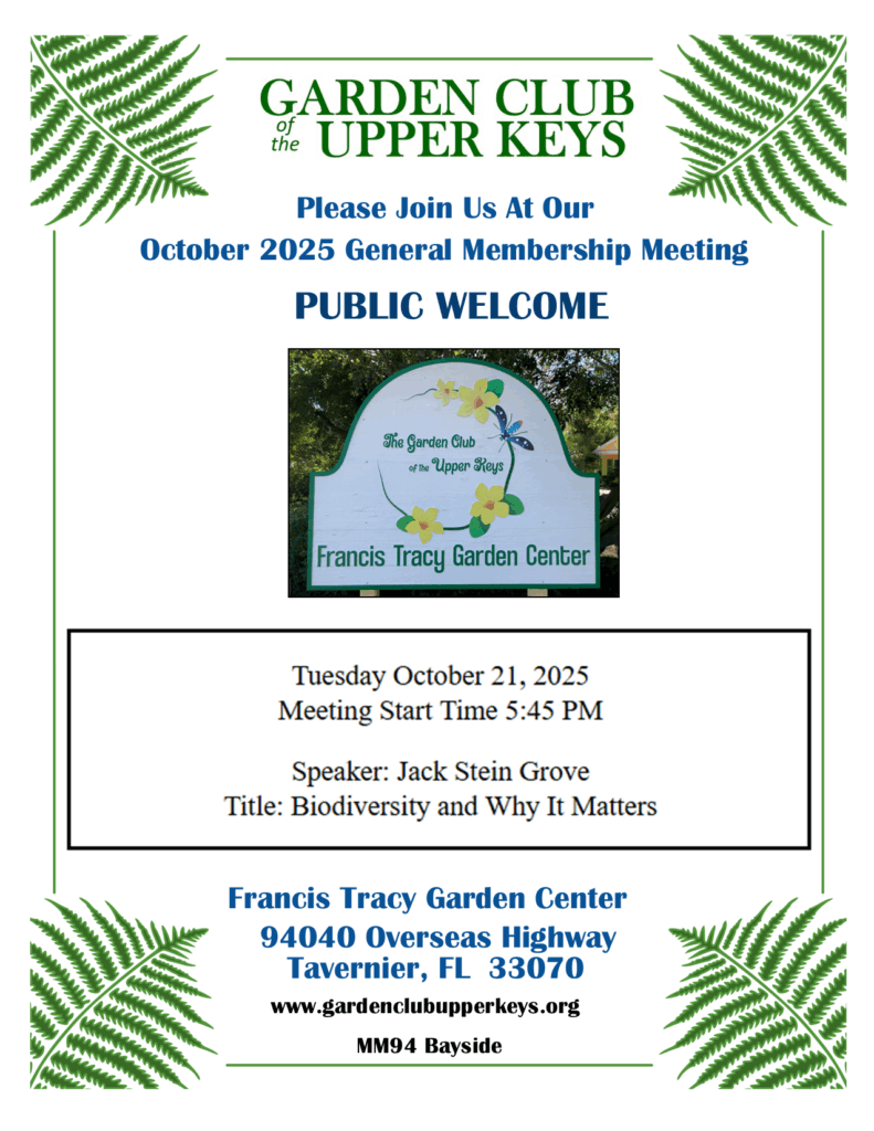 The Garden Club of the Upper Keys, Inc. is a qualified 501(c)(3) educational organization registered in the State of Florida, registration #CH37407. All donations are tax deductible to the extent permitted by law.