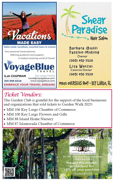 Program ad payments and camera ready copy are due by Friday 12/22/23. Ad copy should be emailed to gardenwalk.gardenclubupperkeys@gmail.com.